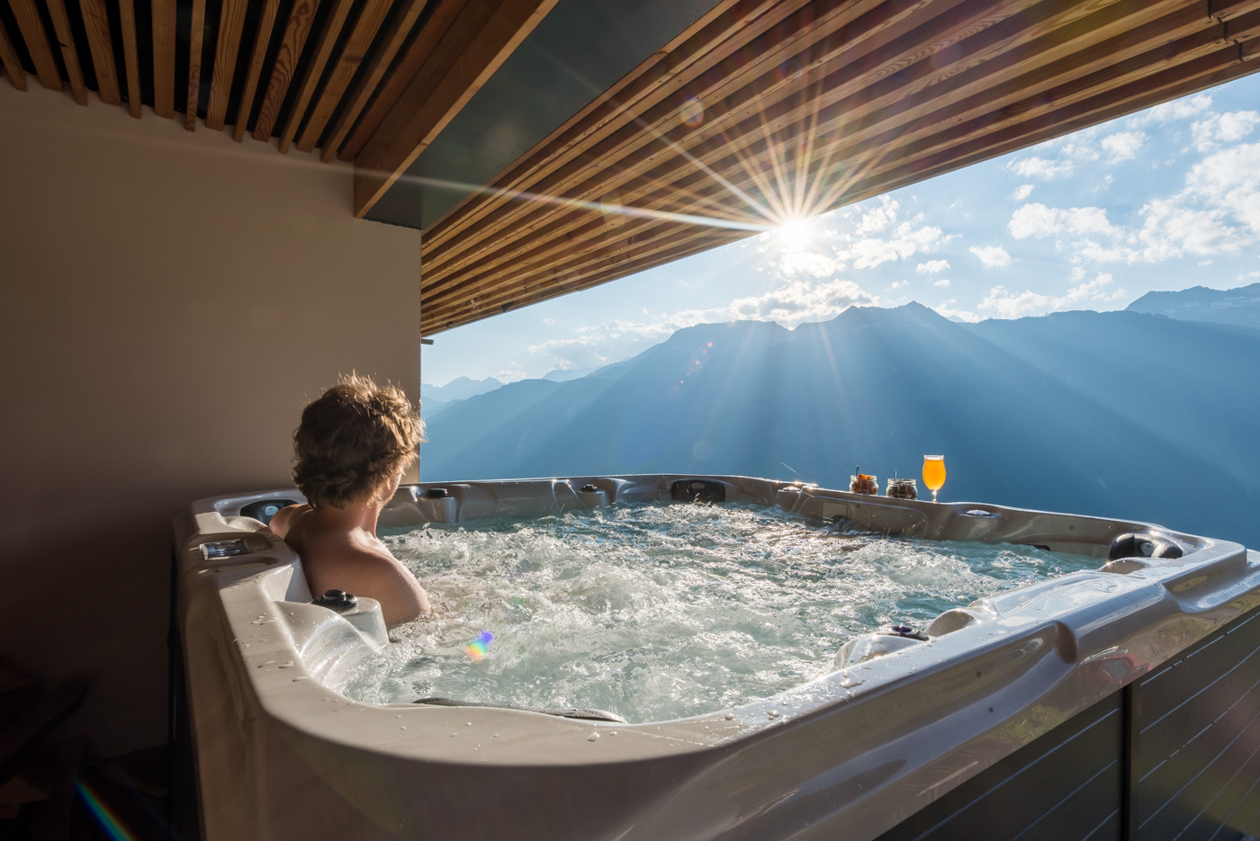It also has a large outdoor terrace with a whirlpool. Enjoy pure relaxation with a breathtaking view of the Valais mountains.